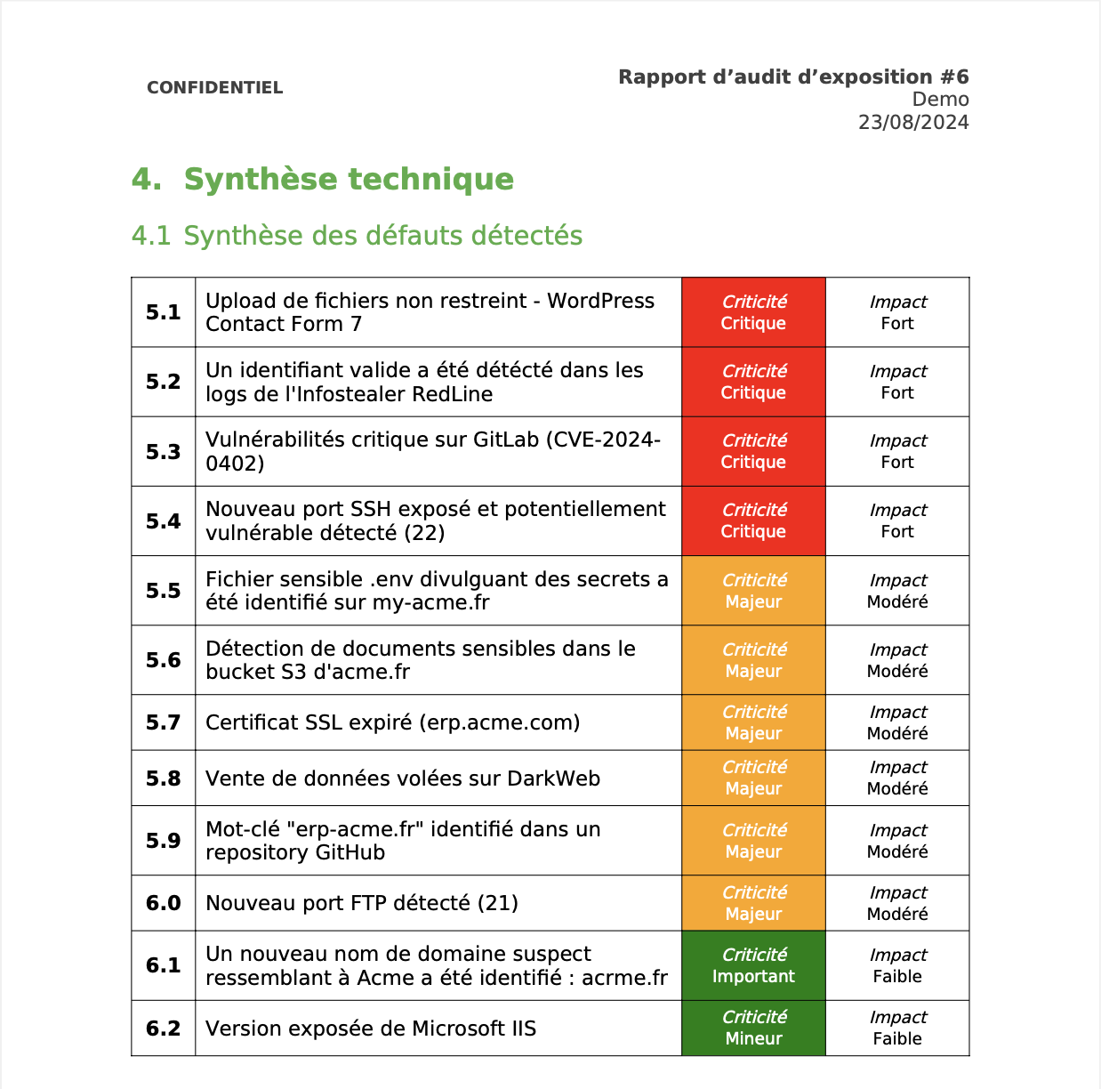 - Des informations détaillées sur les failles de sécurité détectées, ainsi que leurs remédiations associées.